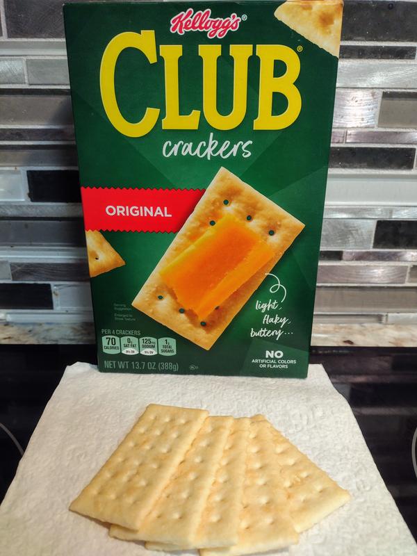 Pack of four 16-ounce boxes of Club Original Crackers from Kellogg. Cheez-It Cheese Crackers Baked Snack Crackers Hot and Spicy 124 Oz Box. 1 sleeve butter or saltine crackers about 30 crackers.